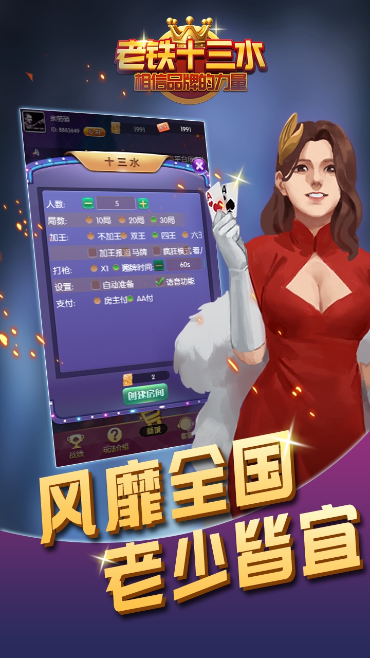 简介:正宗十三水,原汁原味,特色十足! 随心畅玩,超级刺激,还原线下游戏玩法!更公平、更透明、结算界面一目了然!游戏操作简单,超快上手无压力! 游戏特点 1、特色的好友房模式,让你快速邀请好友,没有外人的打扰,私密棋牌对局。 2、客服24小时全天在线,有什么问题直接与客服进行沟通,帮助你解决问题 3、主打社交娱乐,使用趣味表情、刺激的互动道具来增加感情! 4、汇集了全网最经典的游戏类型和玩法模式,想你所想,玩你所玩。 功能开发 【游戏特色玩法】:精致画面、特效表情趣味生动,操作简单易上手! 【丰富赛事开启】:趣味表情、互动道具、支持语音聊天,游戏交友两不误。 【完美细节体验】:同城地理显示,与身边玩家同局游戏,更能追踪好友一战到底! |